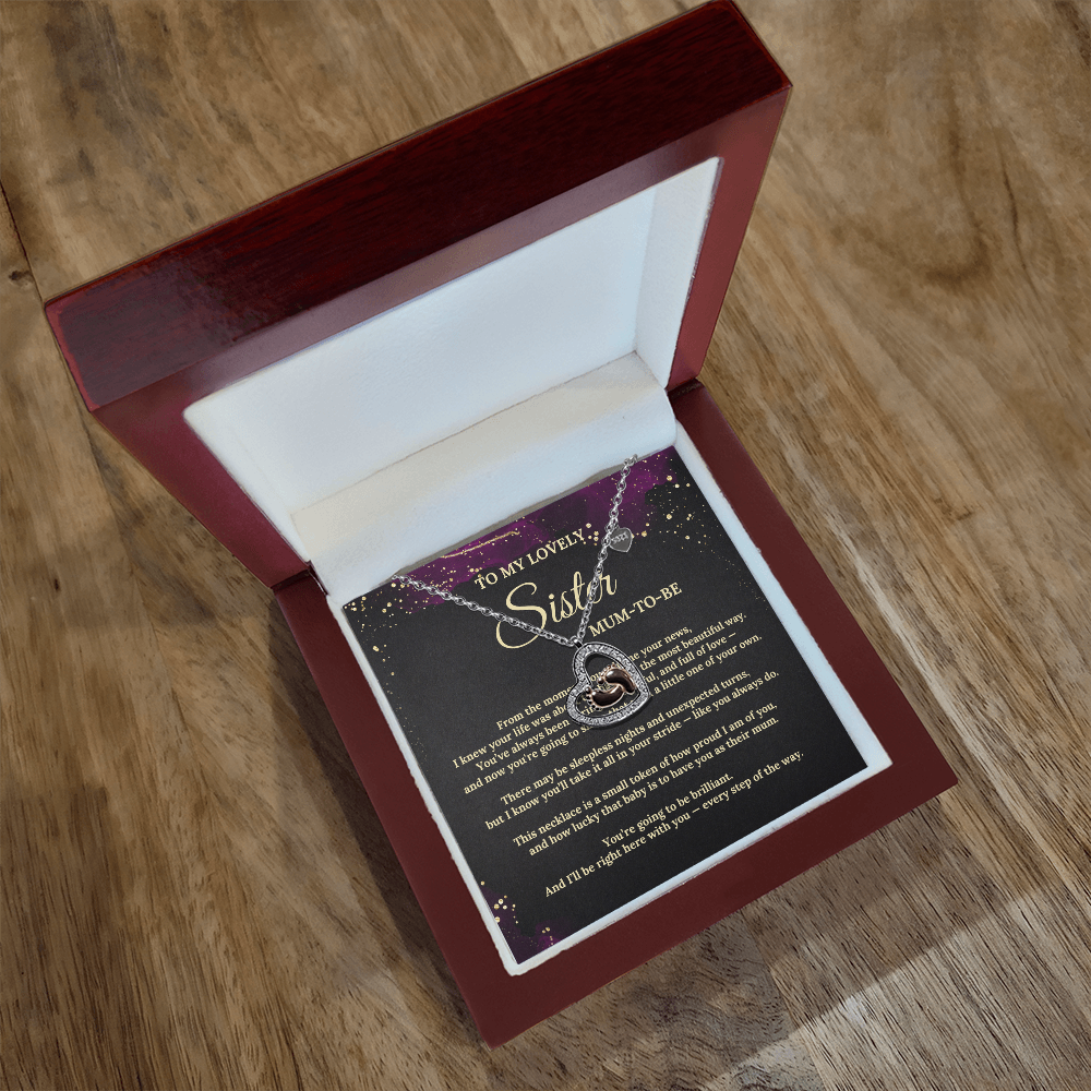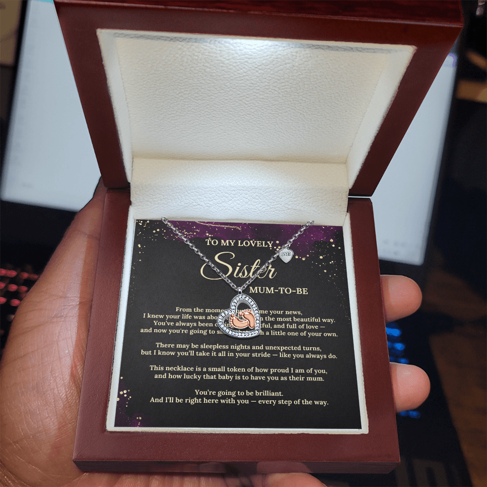 To My Lovely Sister - Mum-To-Be - Baby Feet Heart Necklace